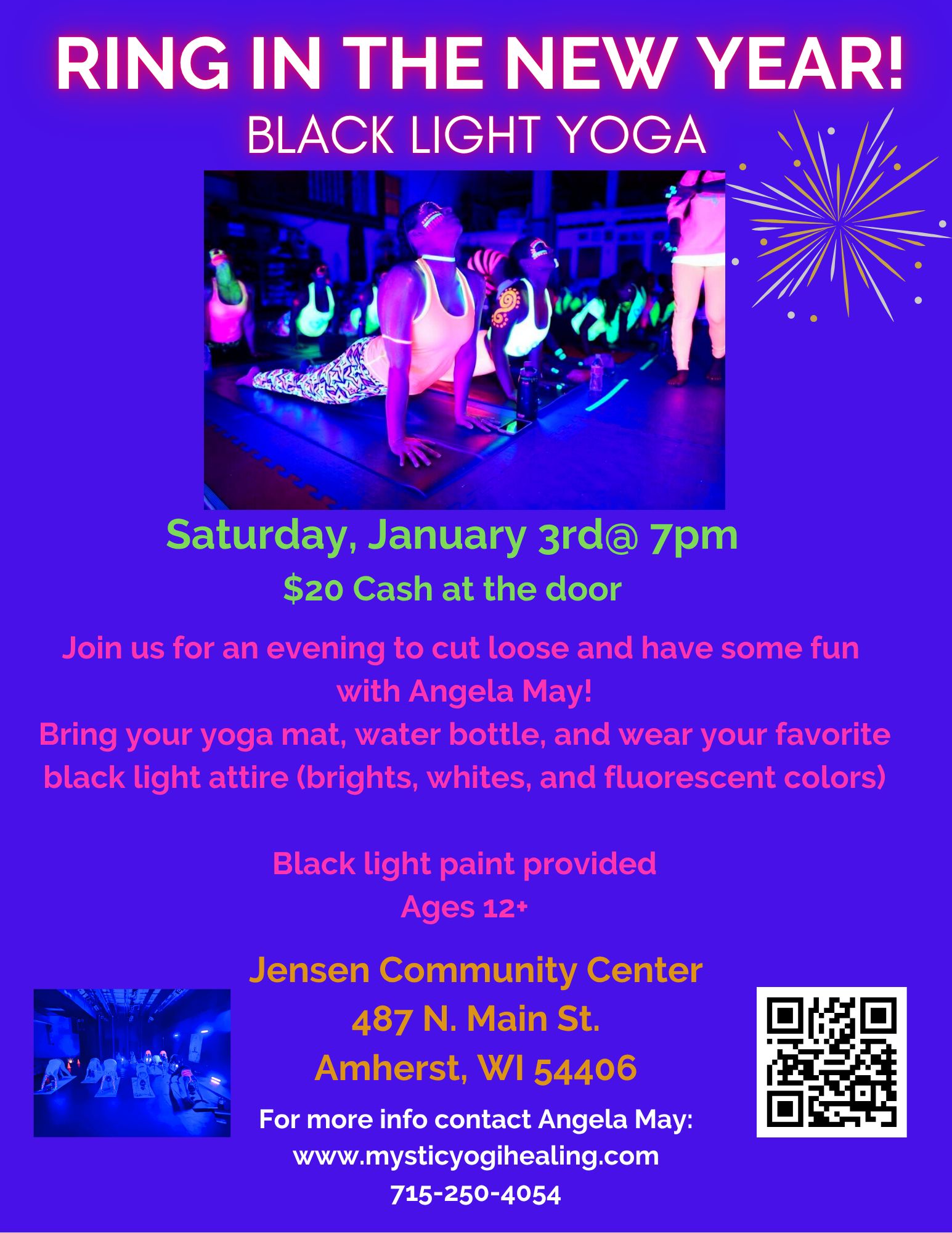 Join us for an evening to cut loose and have some fun! Wear your favorite black light yoga attire, throw on a little paint and hop on your mat to Ring in the New Year!
