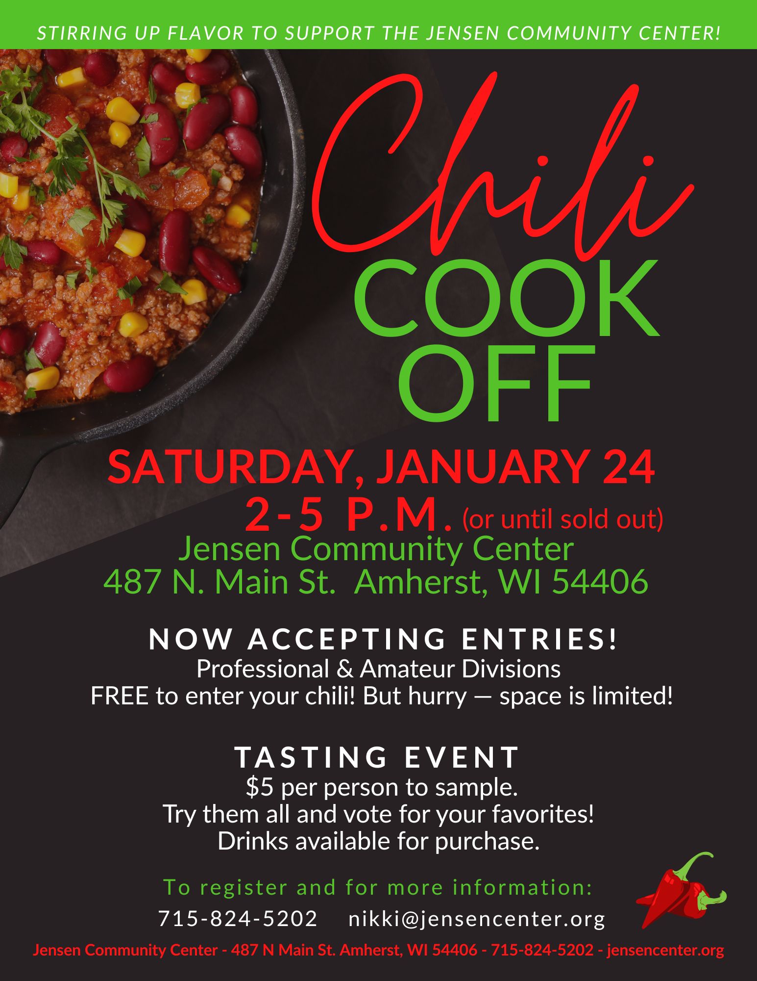 Now accepting entries for professional and amateur divisions. Free to enter but hurry – space is limited! If you don’t want to cook, then come eat samples of chili and vote for your favorite! $5 per person!