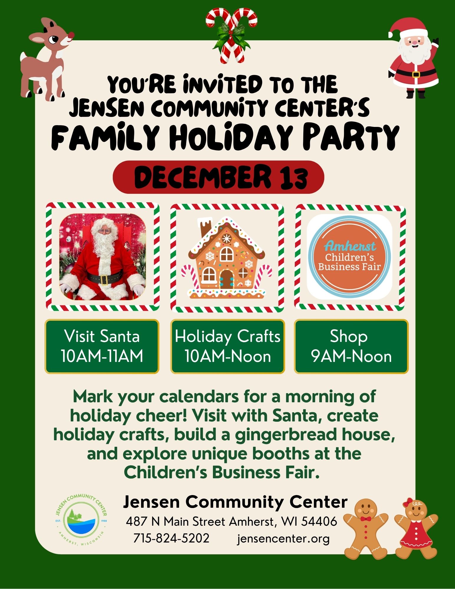 Mark your calendars for a morning of holiday cheer! Join us to visit Santa (10 a.m.-11 a.m.), make holiday crafts and build a gingerbread house (10 a.m.-noon), and explore one-of-a-kind booths and shop at the Children’s Business Fair (9 a.m.- noon). Fun for the whole family!