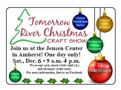 The annual Tomorrow River Christmas Craft Show will take place on Saturday, December 6, 2025 from 9 a.m. until 4 p.m. $2 admission. A one day, unique craft show with over 40+ craft vendors. Please join this unique shopping experience to browse all the different varieties of handmade crafts, which include upcycled, vintage, primitives, woods and country decor, canned goods, soaps, beauty products, baked goods, dips, crochet, candles and much, much more!!! Find “Tomorrow River Christmas Craft Show” on Facebook or email fletcherstrc@gmail.com for more information.