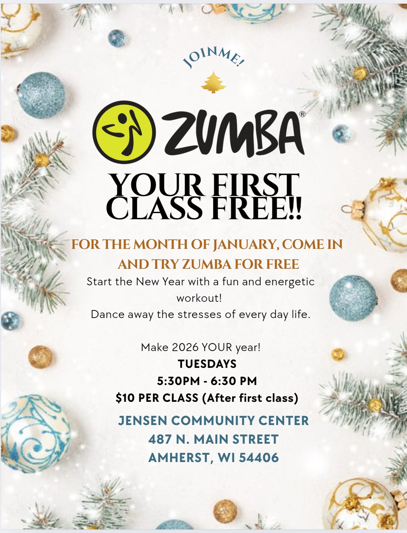 It’s time to Zumba with Instructor, Isabel Martinez on Tuesdays from 5:30-6:30 p.m. $10 per class. This is a fun and energetic workout. Your first class is FREE in the month of January!