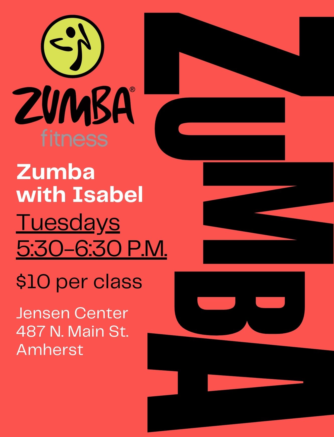 It’s time to Zumba with Instructor, Isabel Martinez on Tuesdays from 5:30-6:30 p.m.  $10 per class.  This is a fun and energetic workout.